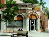 Built in 1908 this is an excellent example of a classic Tourtellotte and Hummel façade building. Merged with the Meridian Exchange Bank in 1912, the building was used to house the Meridian Post Office. In 1938 Elite Cleaners was housed in the building until recently when a silk screen business purchased the site. It was awarded the award by the Chamber of Commerce for being the best improvement in town, when the front was painted a peach color.